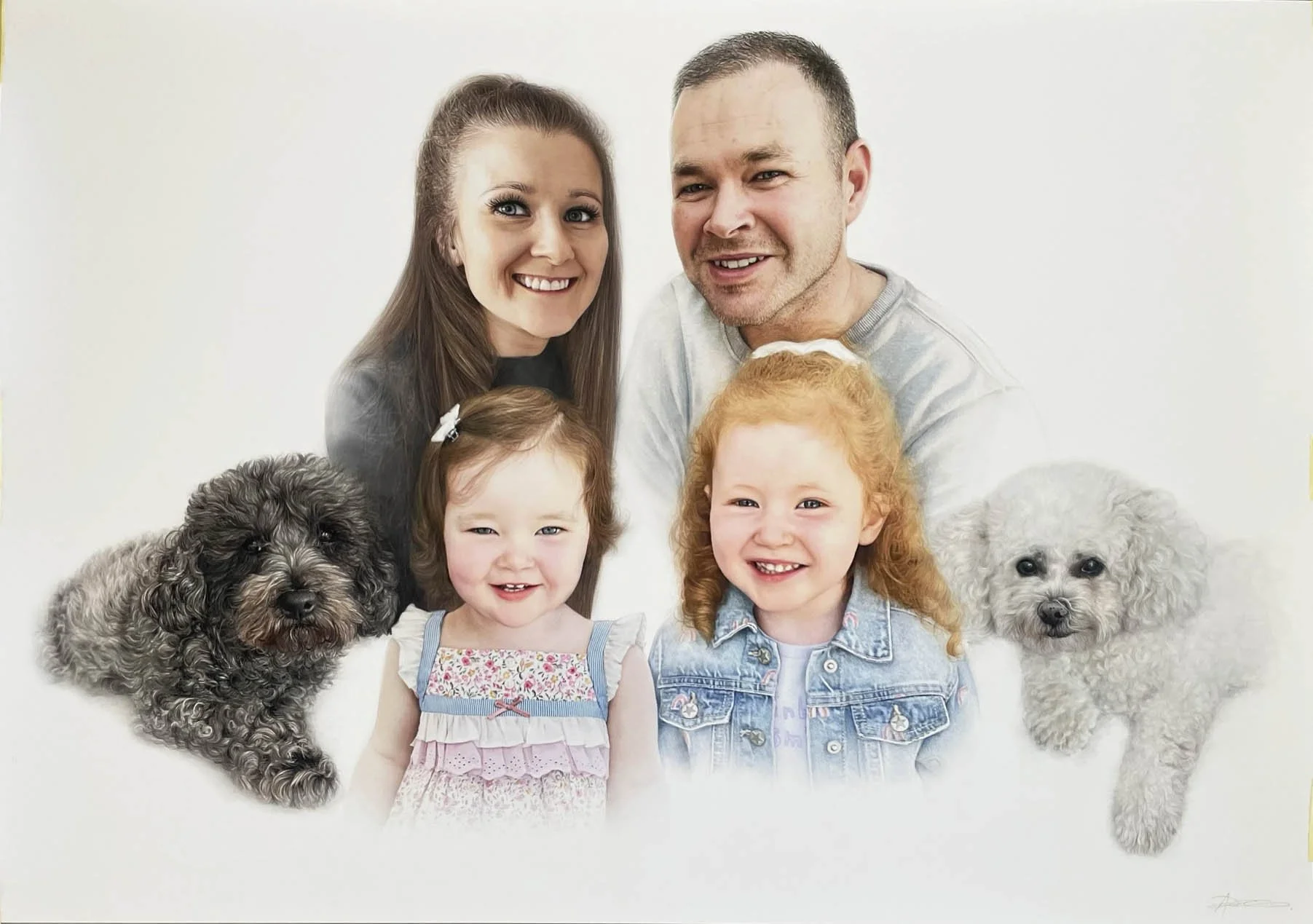 All portraits are hand-drawn with high quality professional media onto 308gsm watercolour paper.